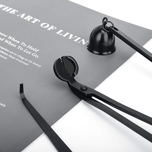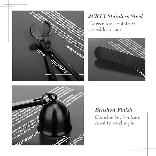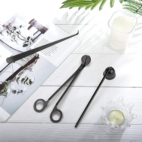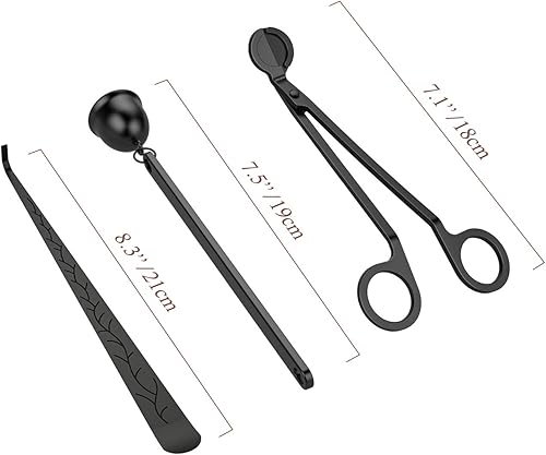 Lewondr Kit 3 Ensemble dundefinedAccessoires de Bougie, Trousse à Outils en Acier Inoxydable avec Éteignoir à Bougie, Coupe-Mèche et Crochet, Cadeau Élégant pour Amateurs de Bougie, 3 pièces - Noir