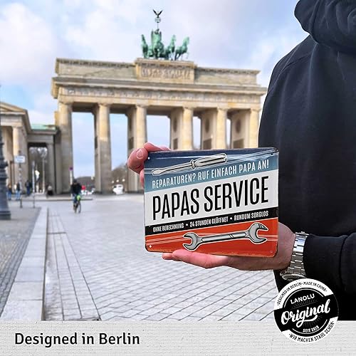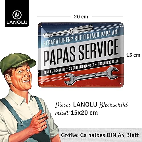 LANOLU Plaque en tôle rétro avec inscription en allemand « PAPAS SERVICE » - Plaque d'atelier ou de fête des pères - Décoration rétro amusante avec inscription en allemand - 15 x 20 cm