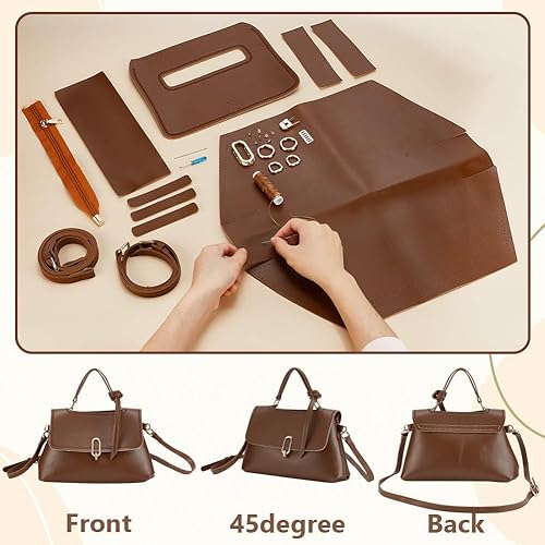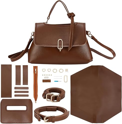 WADORN 26pcs Ensemble de Fabrication de Sacs Faits à la Main, Sac à Bandoulière en Cuir PU Kits Cousus Sac de Bricolage Faisant Tout le Matériel avec Poche Zippée Sac à Bandoulière Faisant,26×17cm