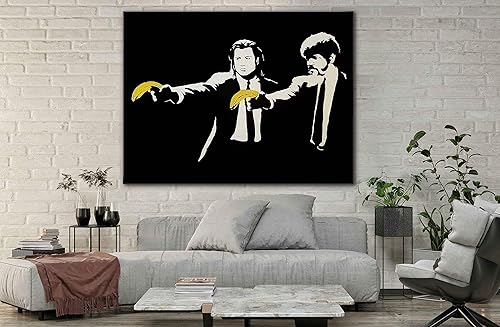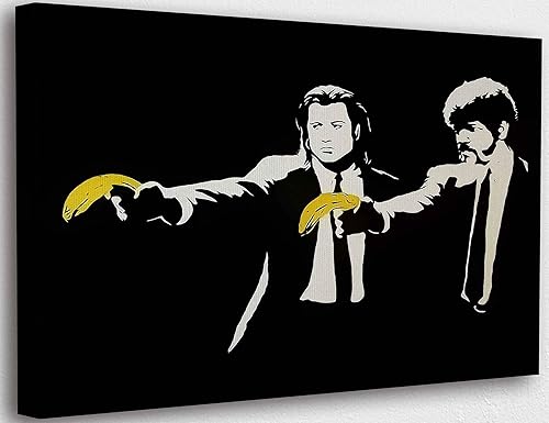 Banksy Graffiti Toile Art Décor Pulp Fiction Banana Guns Tableau Street Art Impression sur Toile Tableau Décoration murale salon moderne Avec Cadre (Pulp Fiction Banana Guns, 30x50cm(11.8x19.7inch))