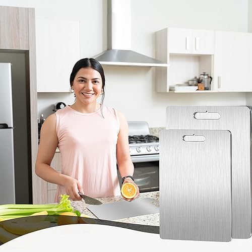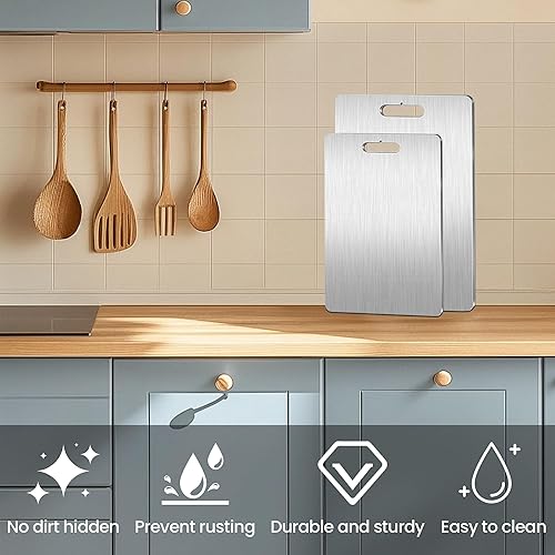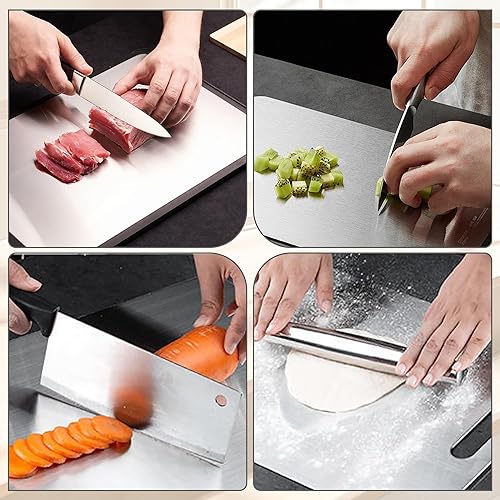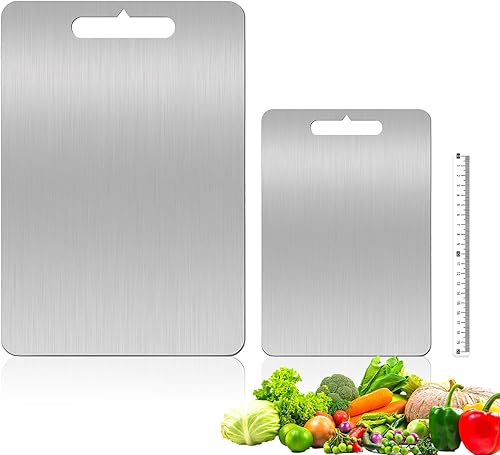 Shiawase 2 Pièces Planche à Découper en Titane, Planche À Découper en Acier Inoxydabl Avec Règle Transparente, Planche à Découper Double Face de Qualité Alimentaire, pour Cuisine Viande les Légumes