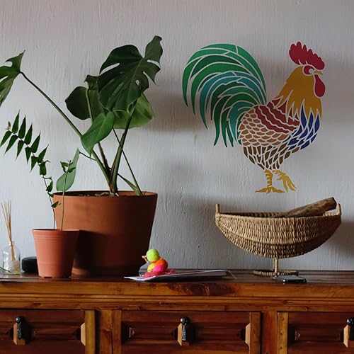 BENECREAT Pochoirs de Peinture en Plastique à Grand Motif de Coq, Gabarit de Dessin sur Le Thème de la Ferme de 30x30 cm pour la Peinture sur Les Sols, des Murs, des Portes, Tuile, Bois, Cabinet