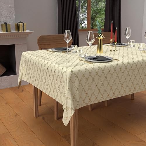 Soleil d'ocre, Nappe Festive Rectangle Anti-tâches en Pur Coton 160x300 cm Celeste Or