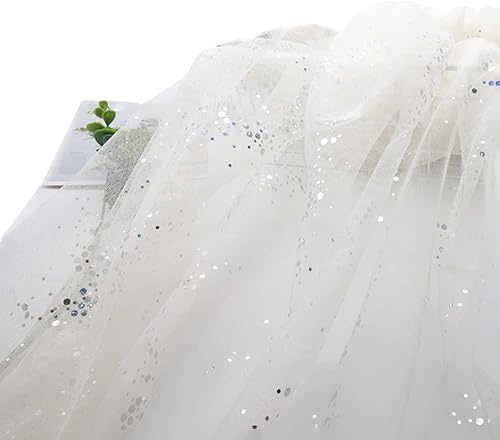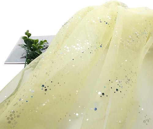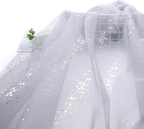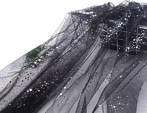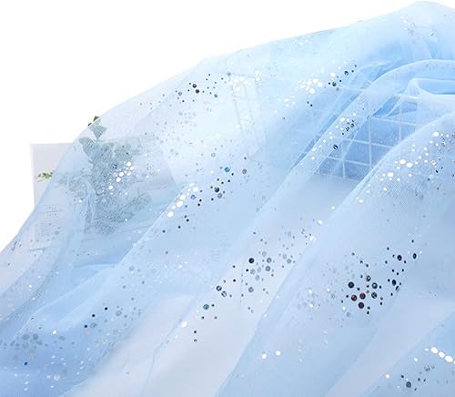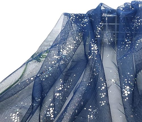 SYSUII 160 cm x 2 m - Mousseline de soie à paillettes - Tissu décoratif à coudre - Tissu transparent à paillettes - Pour bricolage, mariage, robe, décoration de table - Bleu marine