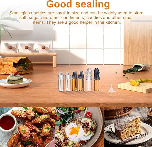 LWLWA Rangement Epices 7 Pièces Pot Epices Verre avec Mini Entonnoir Petite Cuillère Fiole en Verre Portable, Epices Rangement, Mini Bouteille Verre pour Stocker Épices Poudre