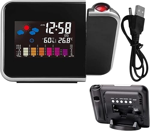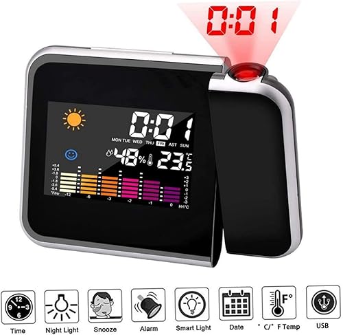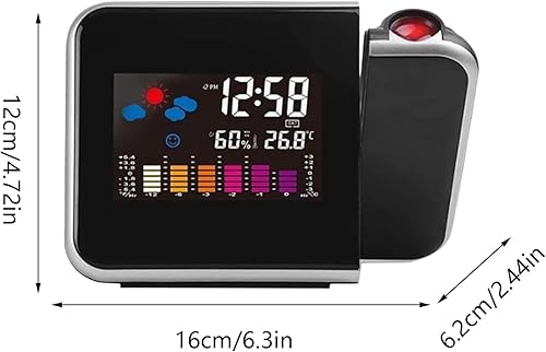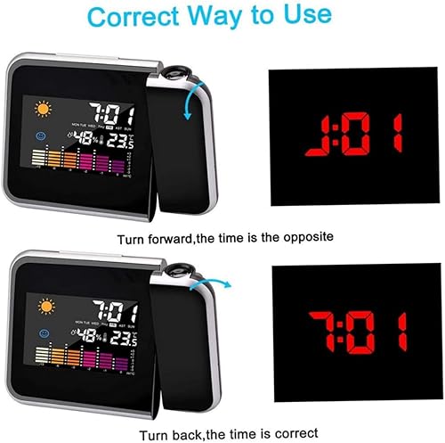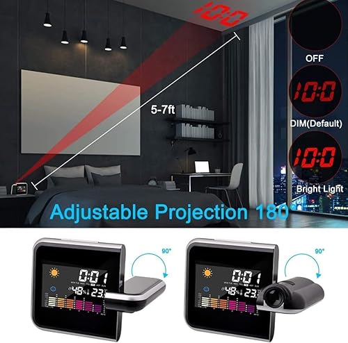 Réveil de Projection - réveil Fort, Projection 16 cm du réveil numérique - Affichage LED avec Projection de 180 °, humidité 20–90%, Affichage de température et Alarme idéale pour Les Chambres et la