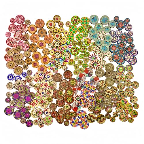 ONEBO 300 Pièces Mixte Boutons en Bois Forme De Fleur, Bouton d'Artisanat Rétro Fait à la Main, Boutons en Assorties Avec 2 trous, pour Coudre À Tricoter Arts Artisanat DIY Décoration (3 Tailles)