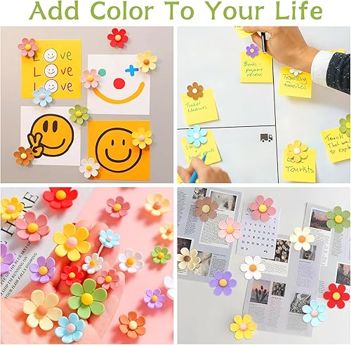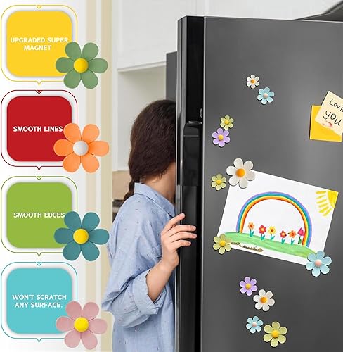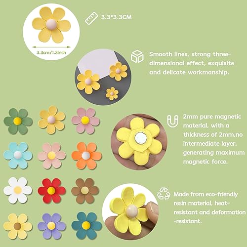 PIWOSGOL 32 Pièces 3D Aimant Frigo de Fleurs, Magnet Frigo Décoratifs avec 12 Couleurs, Aimants Photo Magnetique pour Ableau Magnetique, Réfrigérateur, Casier, Cuisine -3 Tailles