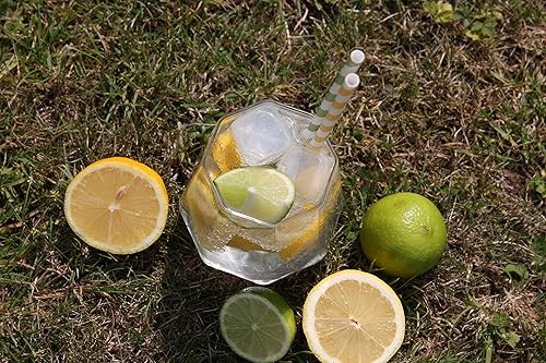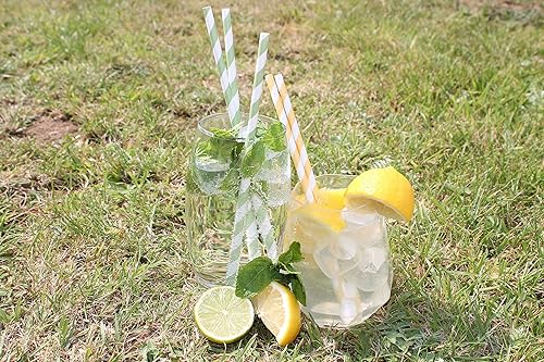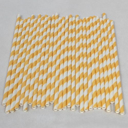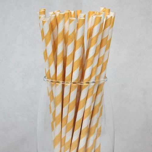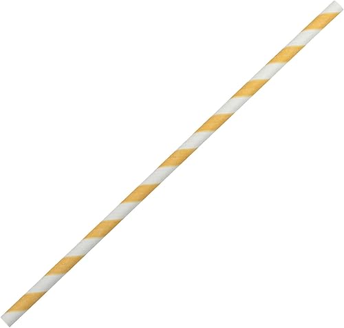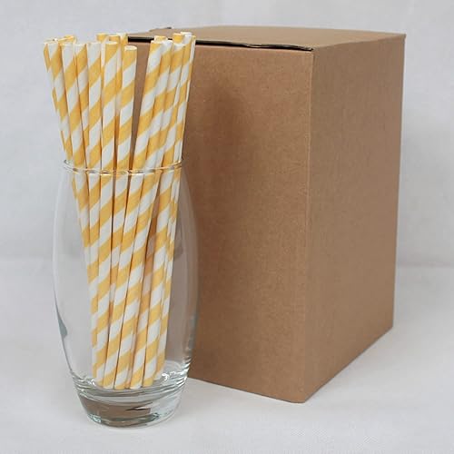 Pailles en Papier à Rayures Jaunes (6mm x 200mm) - Boîte de 500 - Certifiées FSC/Fabriquées à partir de matériaux sûrs pour les aliments/Produit biodegradable/Respectueux de l'environnement