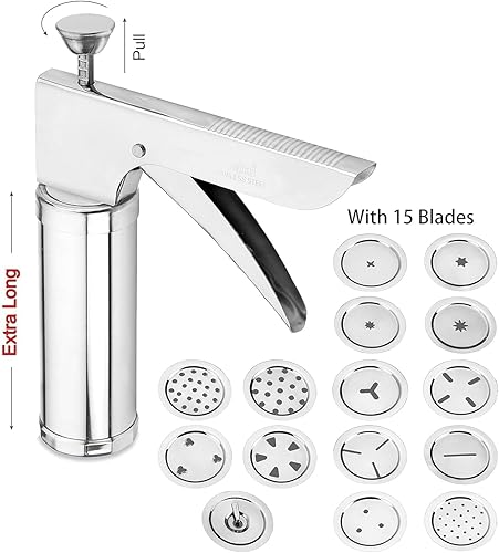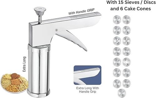 Presse à biscuits multifonction en acier inoxydable avec 15 disques, 6 cônes de gâteau, kit de fabrication de biscuits, machine à spaghetti, machine à Murukku, machine à nouilles Namkeen Sev Maker