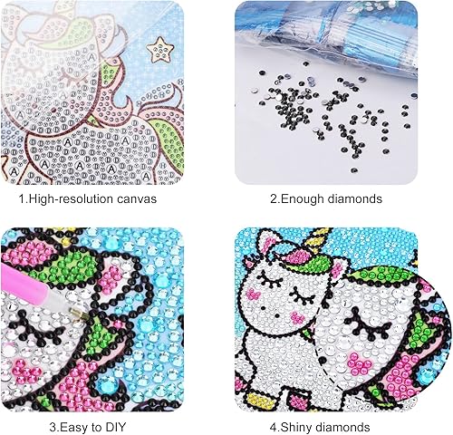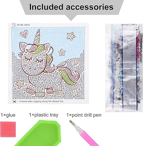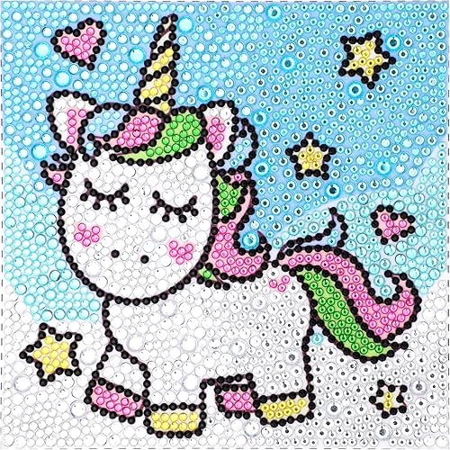 MWOOT 5D DIY Licorne Diamant Peinture Kits, Peinture par Numéro Set, Strass Diamond Art Painting Broderie Point de Croix Cristal Illustrations pour Cuisine Murale Décoration (15x15CM)