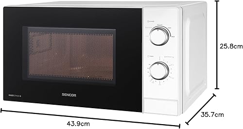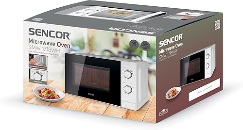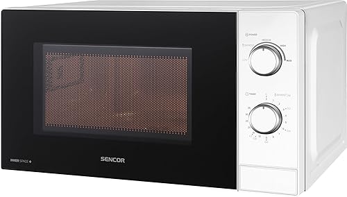 Sencor Four à Micro-ondes Compact, EasyClean, 20L - Rapide 700W, 5 Niveau de Puissance, Plateau tournant 25.5cm, Minuterie jusqu’à 35min, Fonction Décongélation hygiénique - Blanc