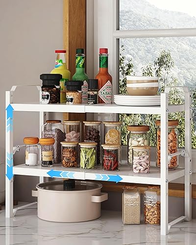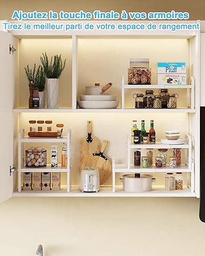 UMDONX 2 Pièces Etagere Rangement Cuisine Placard,Extensible de 32,5 à 52 cm,Porte-épices Empilable en Métal Organisateur Placard Cuisine(Noir)