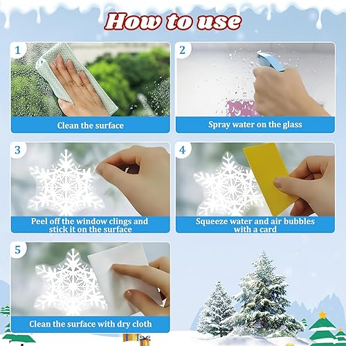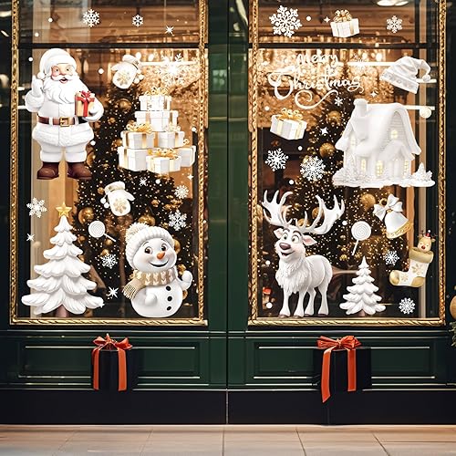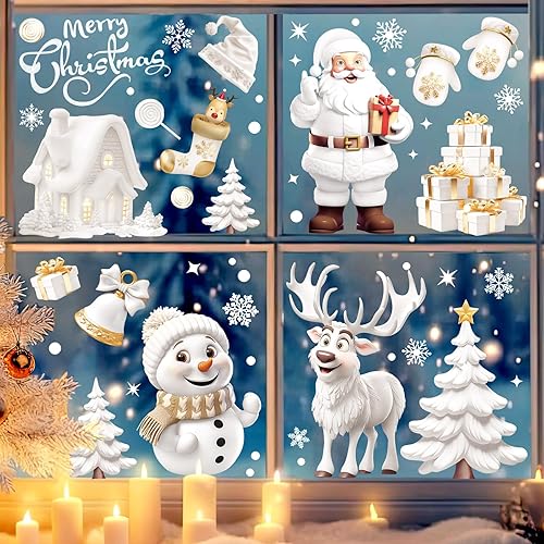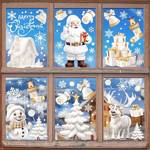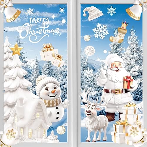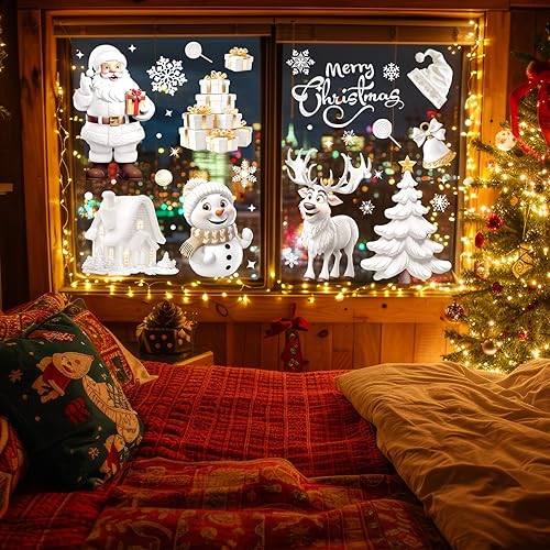 Stickers Noel Fenetre Reutilisable, 190 Decoration Noel Fenetre Electrostatique Autocollant Noel Flocon de Neige Père Noël PVC Autocollant Noel Fenetre Vitre pour Vitrine Porte Deco Noel Interieur