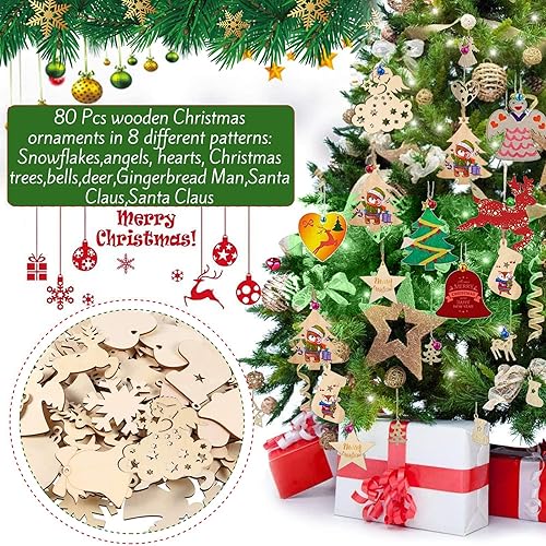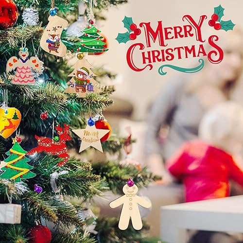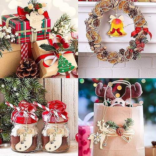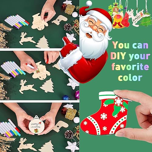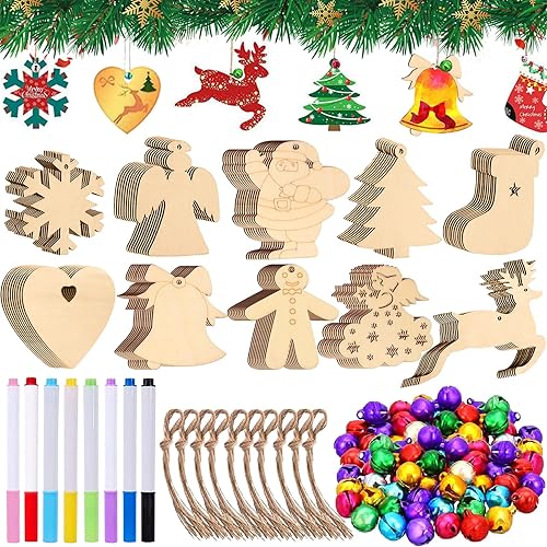 VIPNAJI 248pcs Bois Arbre de Noël Ornements, Décorations de Noël, Pendentif Cadeaux pour décorations de Bricolage Arbre de Noël, DIY décoration, avec Corde, Petites Clochettes, Stylos De Peinture