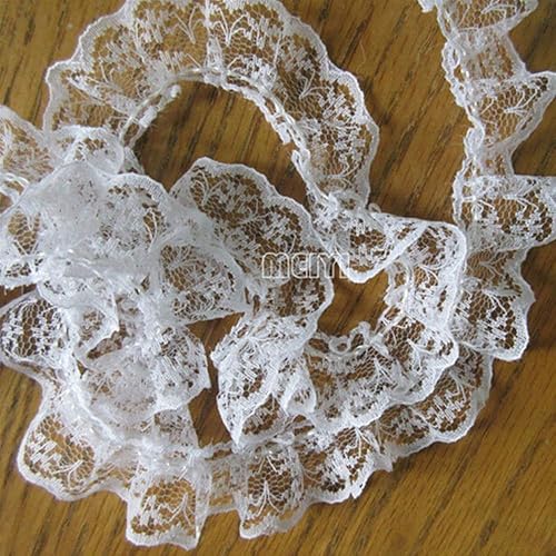 10 metres plissé Dentelle Edge Réuni à volants en maille filet Blanc Bordure en dentelle ruban festonné Crochet mince garnitures pour adhésif vêtement de décoration Home Decor Single Edge, 2cm blanc