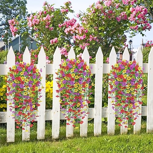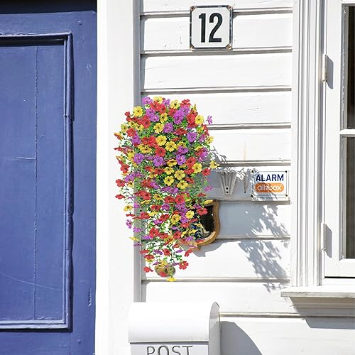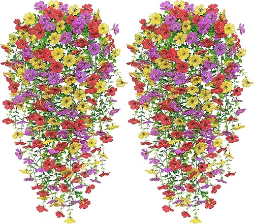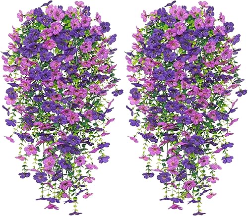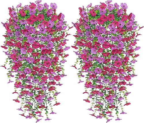 Betylifoy Lot de 4 Fleurs Artificielles à Suspendre Résistantes aux UV Fleurs Artificielles à Suspendre Mélange de Couleurs pour Jardin Terrasse Mariage Décoration Extérieure (Violet&Rouge Rosé)