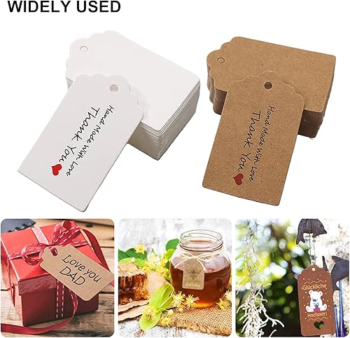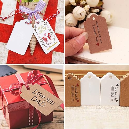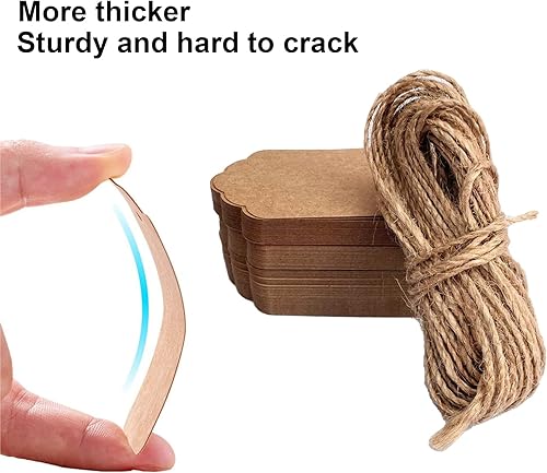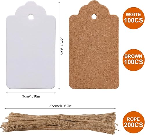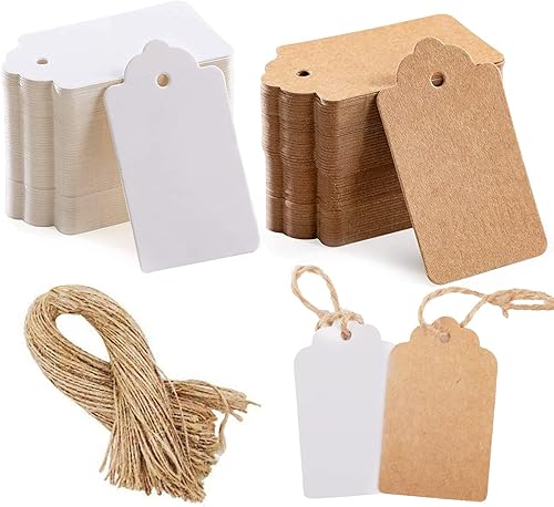 Gtwinsone Lot de 200 Etiquettes Cadeaux en Papier Kraft Vierges Marque Place Mariage Etiquette Prix avec Ficelle Jute Rectangle 3x5 cm Marron et Blanc pour Valentin Anniversaire Bagages Artisanat