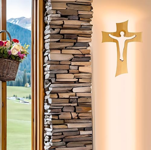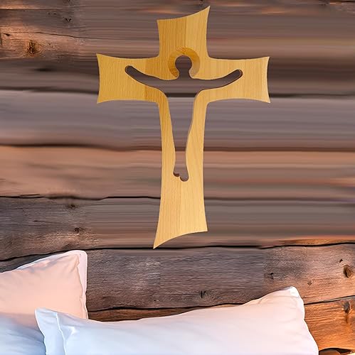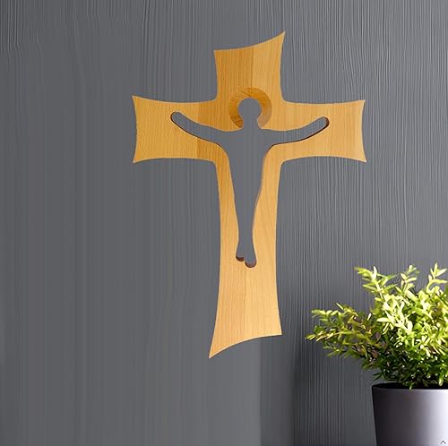 Kaltner Präsente Idée cadeau – Croix murale en bois de hêtre véritable crucifix pour le mur 35 cm