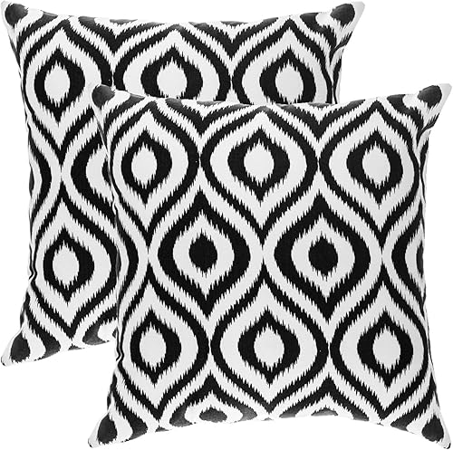 TreeWool, (Lot de 2 Housses de Coussin décoratives avec Motif à Ikat Ogee (45 x 45 cm / 18 x 18 inches, Noir)