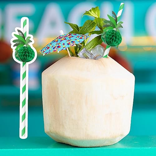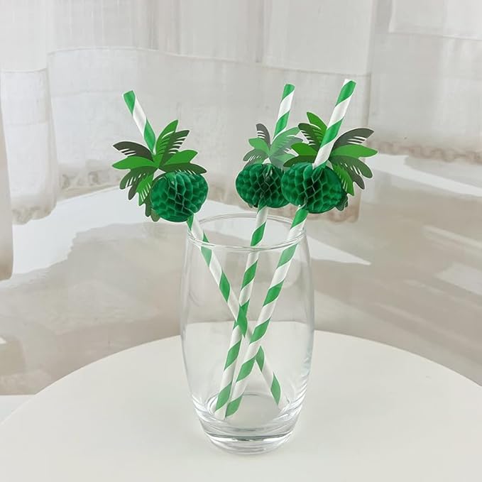 Lot de 20 pailles en papier 3D pour décorations de fête hawaïennes, pailles à cocktail, pailles en papier vert nid d'abeille et cocotier - Pailles en papier vert - Pailles en papier vert - Décorations