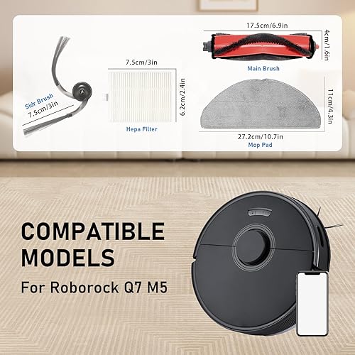 DianSung Kit d'accessoires pour Roborock Q7 L5+, Q7 M5, Q7 M5+, Q7 L5 aspirateur pièces de rechange, 1 brosse principale, 4 brosses latérales, 4 filtres Hepa, 6 chiffons