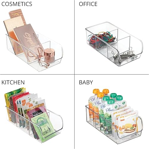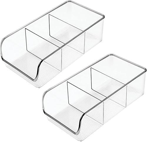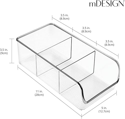 mDesign rangement de cuisine – boite de rangement pour soupes en sachet, épices, etc. – porte-épices en plastique avec 3 compartiments pour l'armoire et le plan de travail – lot de 2 – transparent