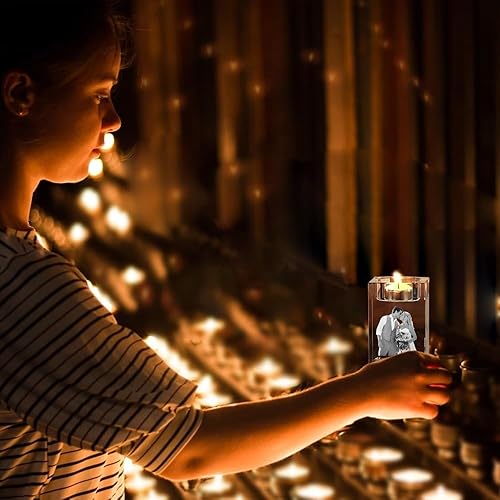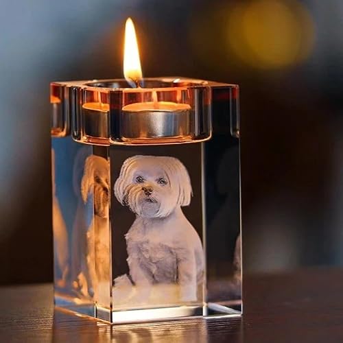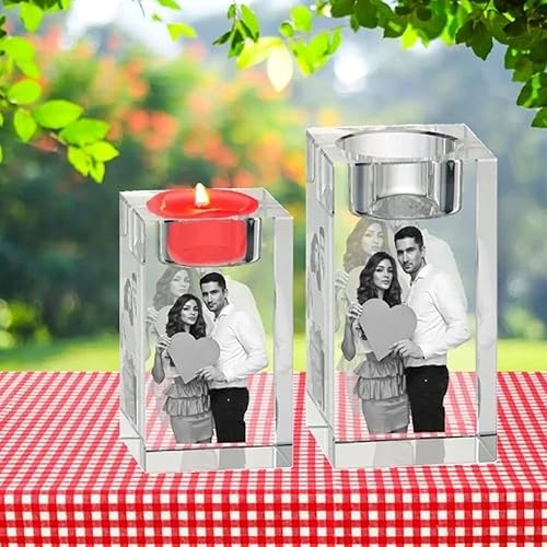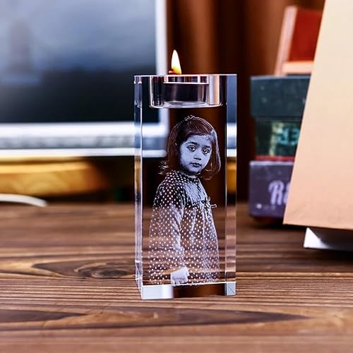 Bougeoir en Cristal avec Photo 3D Personnalisé en Verre Cristal avec Nom/Texte, Bougeoir De Style Européen pour Mariage, Bougeoir pour Bougie Chauffe-Plat pour Anniversaire, Noël(8CM)
