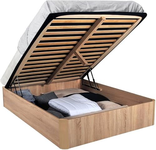 WEBER INDUSTRIES LIT Coffre Spiro 160x200cm + 1 SOMMIER/Décor Chêne Blanchi