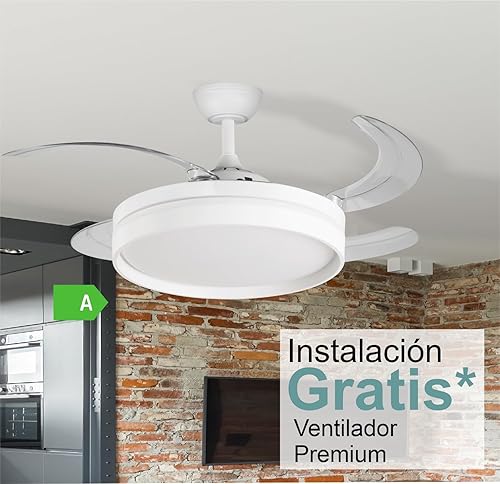 Bastilipo - Blanc, ventilateur de plafond à 4 pales rétractables 40 cm, moteur DC 30 W, télécommande, lumière LED 3 couleurs 28 W, FALESIA COMPACT