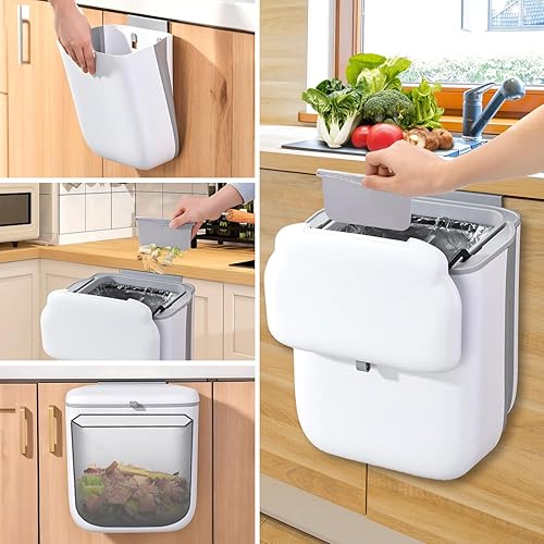 Poubelle Suspendue Cuisine avec Couvercle, 10L Poubelle Murale Pliable, Poubelle Camping Car, Poubelle de Cuisine, Poubelle Suspendue Pour Cuisine, Voiture, Salle de Bain, Bureau