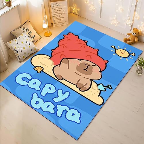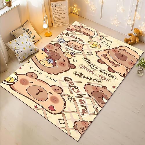 Fadaing Capybara Tapis de salon, 160 x 230 cm, motif animal mignon, pour chambre d'enfant, dessin animé Capybara Tapis de jeu pour enfants (11, 140 x 200 cm)