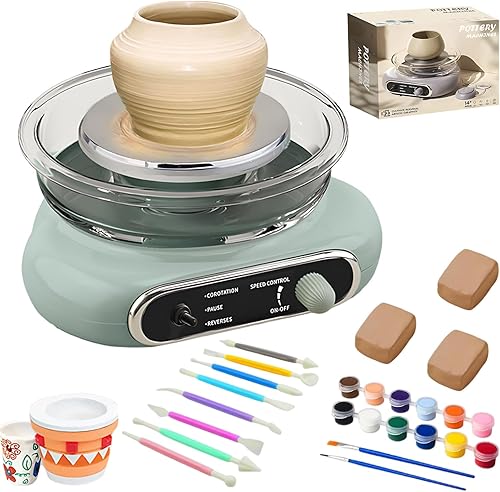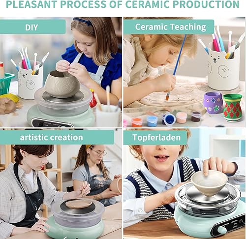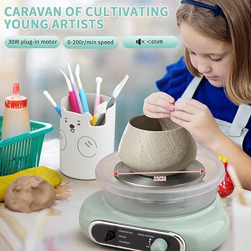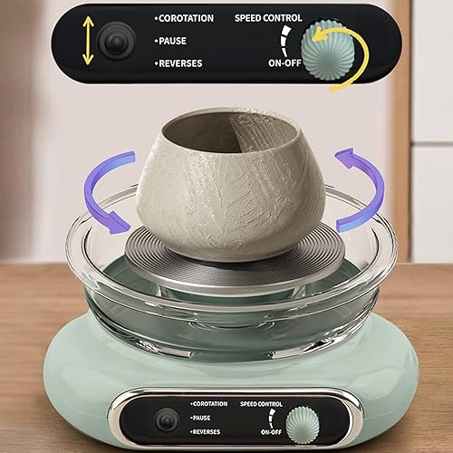 Roue de Poterie Électrique, 200 RPM Mini Tour de Potier avec Machine à Argile à Plateau Tournant de 12 cm avec 8 Outils de Sculpture et Pédale,pour Céramique Bricolage Fabrication