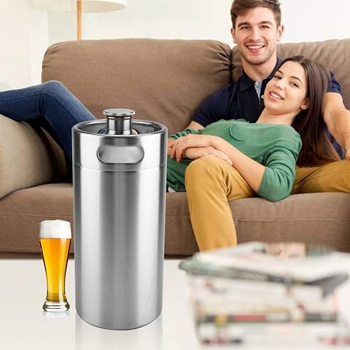 Baril de bière, mini fût en acier inoxydable, peut contenir de la bière à deux poignées pour la maison, le camping, les pique-niques (3,6 L)