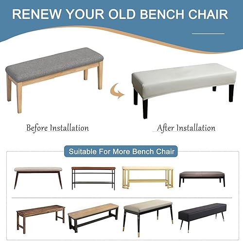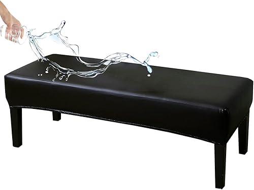 Imperméable Couverture de Banc de Cuisine Housse Banquette Cuir Couvre Banc de Bois Extensible,Bench Protector Cover Housses Banquette de Salle Housse Pouf Tabouret Pour Rectangulaire(Schwarz,80cm(31.