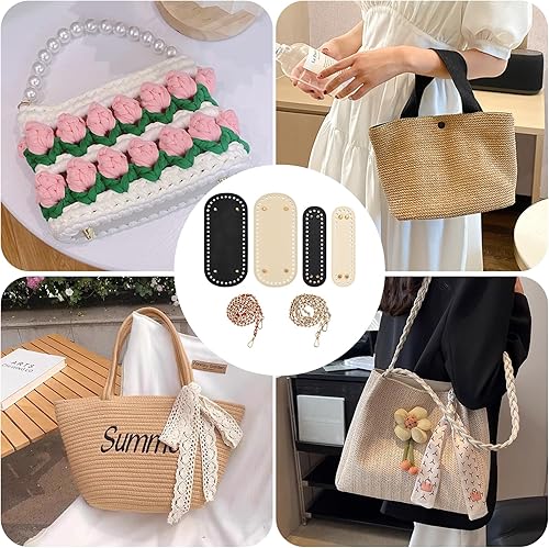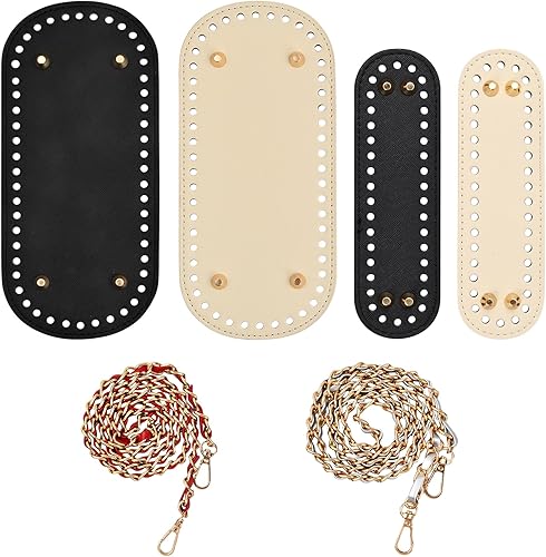Pinsheng Fond de Sac à Crocheter, 4 Pièces Base Sac Crochet Avec 2 Chaîne de Sac en PU, Fond de Sac Crocheter en Cuir PU pour Création de Sacs à Main DIY Sac en Crochet Tricoté (2 Styles)