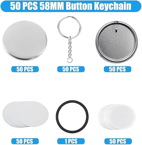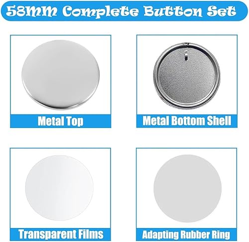 Sujurio Fournitures de Porte-Clés pour Fabricant de Boutons, Kit de Fabrication de Broches 58 Mm/2,25 Pouces pour Machine à Fabriquer des Boutons, Ensembles de Badges de Boutons en Métal