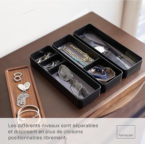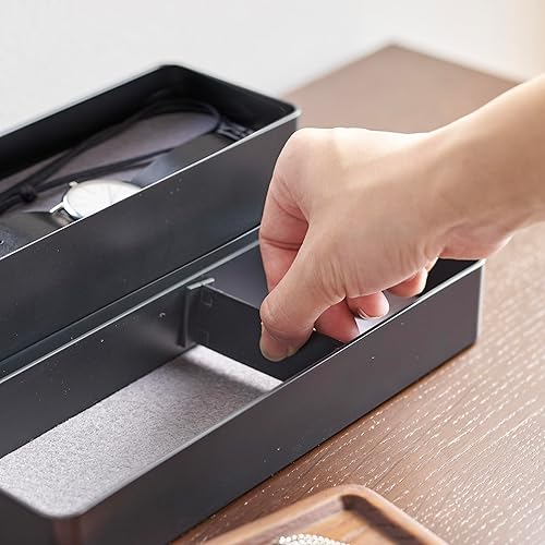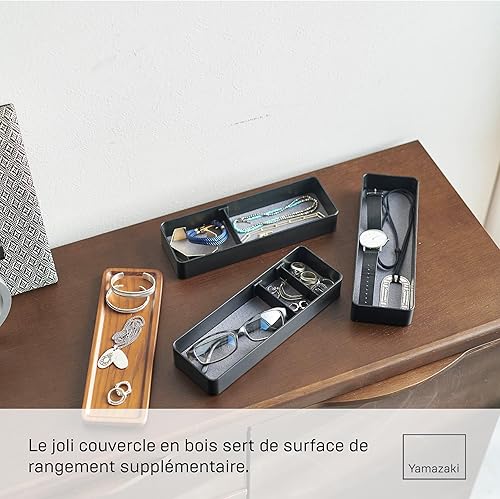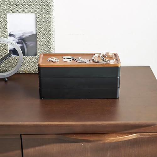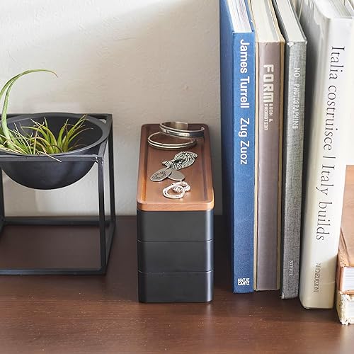Yamazaki 5810 RIN 3~Tiered Slim Accessory Case with Lid, black, ABS Resin/Wood, 24 x 8 x 11.5 cm