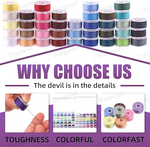Swpeet 72 pièces 72 Couleurs Polyester pré - enroulé Bobine Set avec boîte de Bobine, Bobine de Fil à Coudre, Bobine pré - enroulée, Compatible avec Brother/byblock/janome/Elna/Singer Machine