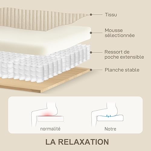 HOMCOM Canapé 3 Place Velours côtelé 210 cm, Design Moderne, 2 oreillers Inclus, Coussins à Ressorts, accoudoirs et Dossier rembourrés, pour Salon, Chambre, Bureau, crème