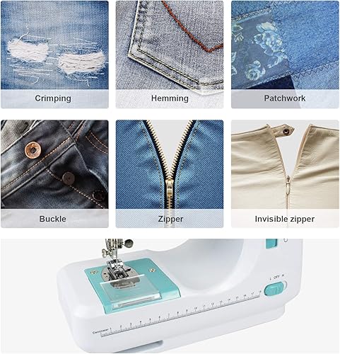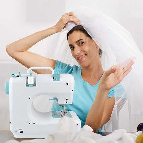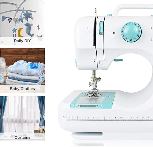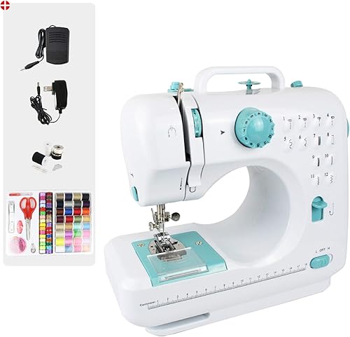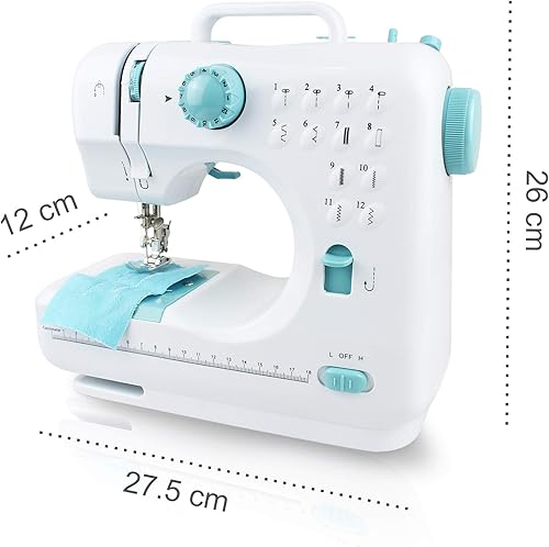 Outil de Couture à 2 Vitesses, Machine à Coudre 12 Points, Blanc/Bleu, 12 modèles, Kit de couture, Matériau: Métal, Modèles de points: 12