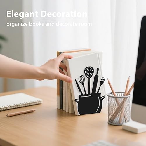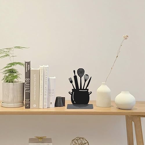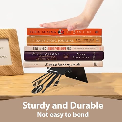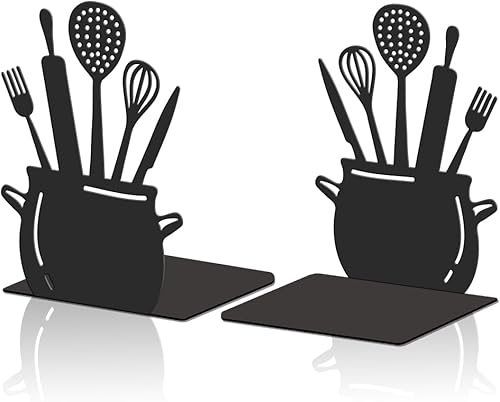 Hobbspring 1 paire de serre-livres de cuisine noirs de 11 x 13,5 x 20 cm, cuillère décorative avec tapis antidérapant pour livres de cuisine, bloqueurs de livres de cuisine, support de livre de