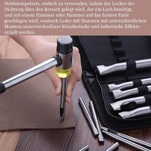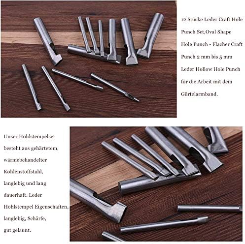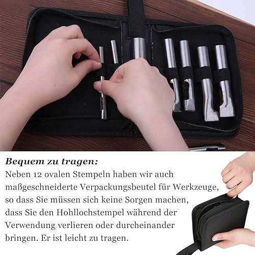 Lot de 12 perforatrices ovales en cuir avec poche de rangement pour l’artisanat, la ceinture, le bracelet de montre, le portefeuille et le bricolage.