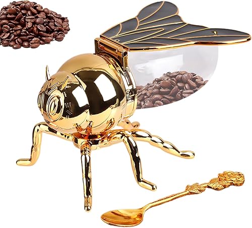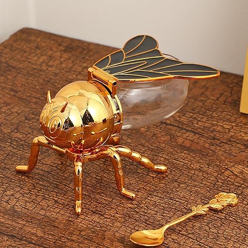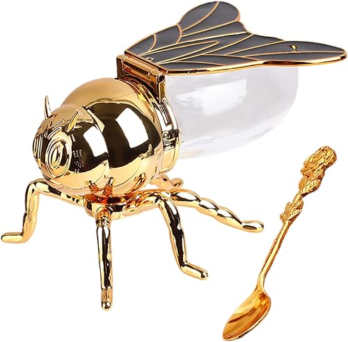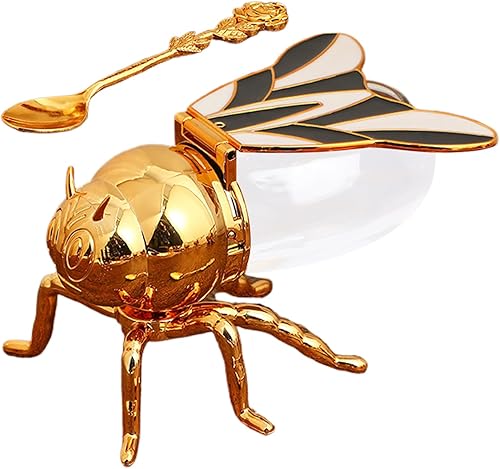1 pot à miel et cuillère en forme d'abeille - 15 x 10 x 9 cm - Pot à miel créatif rétro en forme d'abeille, distributeur de miel, accessoire de cuisine pour les aliments du petit déjeuner, décoration