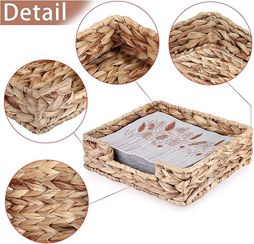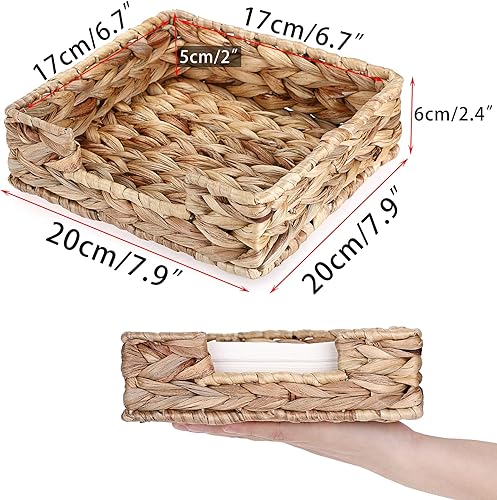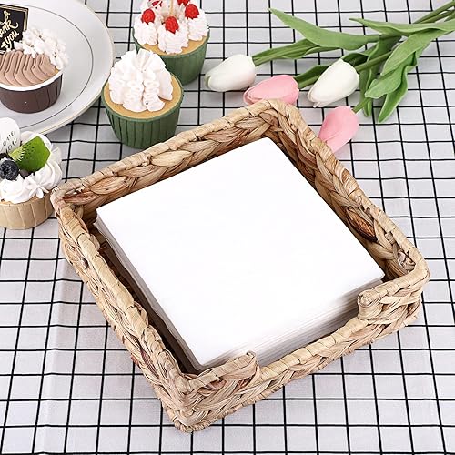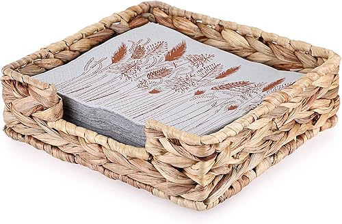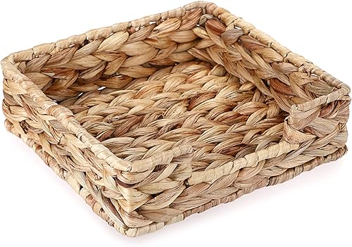 BSTKEY Porte-serviettes carré en jacinthe d'eau, panier en osier naturel, plateau de rangement pour serviettes en papier, plateau de service pour chambre, cuisine, comptoir (20 x 20 cm)