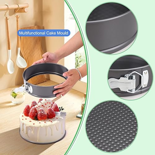 Fine jade2 Moule à Charnière 18 cm Rond moules à gâteau avec fond amovible et fermeture en métal ronds avec revêtement anti-adhésif pour gâteaux pain fromage noir