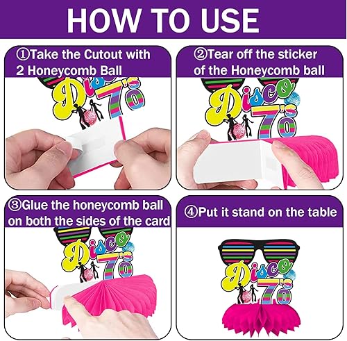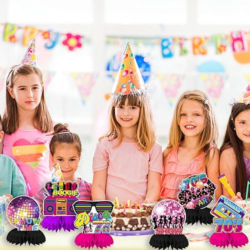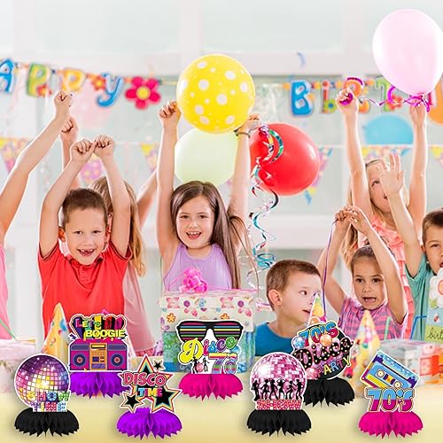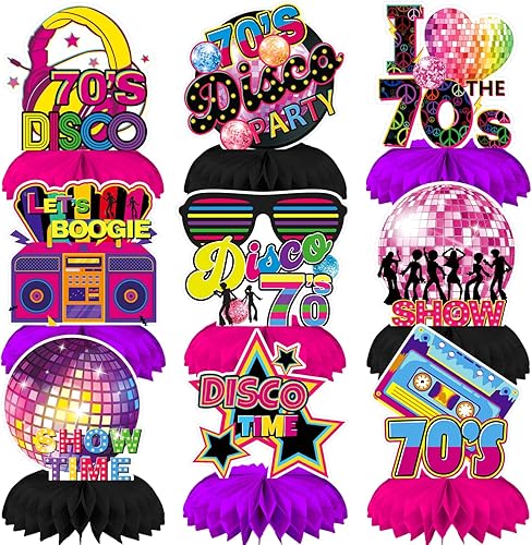 Qpout 9pcs des années 70 Party Table centres de table Retour aux années 70 nid d’abeille centres de table Disco fièvre musique Toppers 70 ' s Vintage Hip Hop nostalgique des années 1970 fête