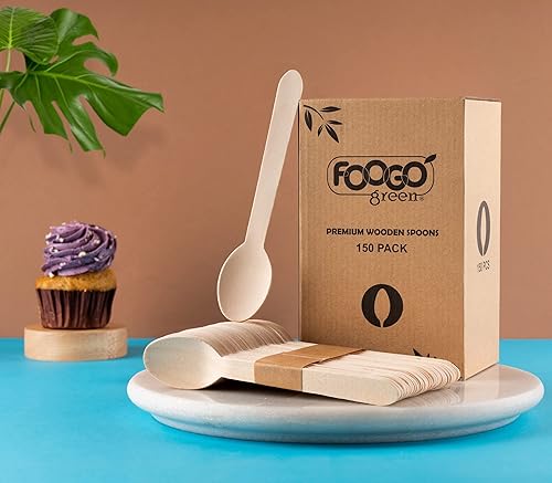 FOOGO Green 150pcs Ménagère jetable en bois, cuillères, fourchettes, couteaux, 16 cm, biodégradable, compostable, respectueux de l'environnement, idéal pour mariage, pique-nique, fête, restauration