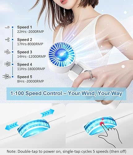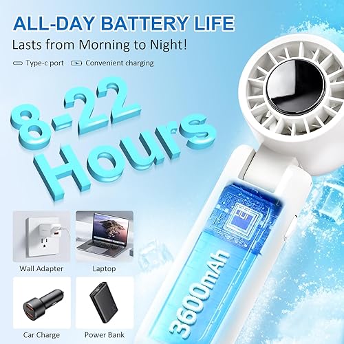 LEDSUUEI Mini Ventilateur Portable à Main, Ventilateur Bureau Affichage LED [Max 22h] 3600mAh USB Rechargeable Ventilateur Cou, 5 Vitesses Silencie Ventilateur Pliable 180° Bureau/Voyage/Extérieur