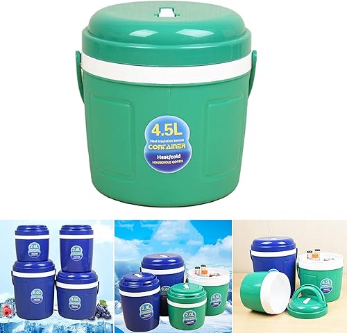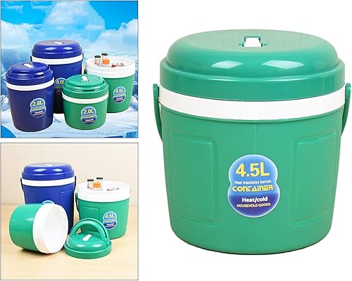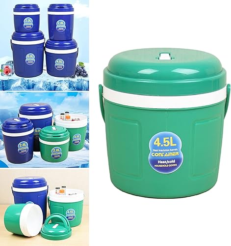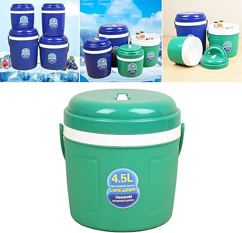 Generic Double Paroi de Glace Seau Voiture Seau Isolé w/Couvercle Alimentaire Chaleur et Froid Ronde Déjeuner Conteneur Isotherme pour le Vin de Stockage de - 4.5L Vert